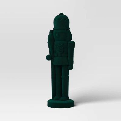 Bring a nostalgic and festive touch to your holiday decor with this Flocked Nutcracker from Wondershop™. Designed in a green hue, this flocked nutcracker matches with the holiday vibes and helps create a one-of-a-kind display. You can place this Christmas figurine set solo on a mantel, coffee table or console table, or mix and match with other holiday decor for festive flair.