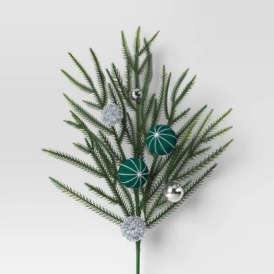4ct Christmas Greenery Picks Green/Silver Decorative Balls – Wondershop™