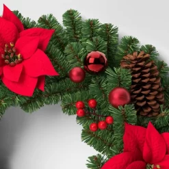 24″ Decorated Pine And Poinsettia Flower Artificial Christmas Wreath – Wondershop™