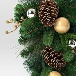 28″ Decorated Pine Hanging Christmas Artificial Swag Green/Champagne Gold – Wondershop™