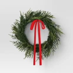 28″ Christmas Led Mixed Norfolk And Cedar Wreath With Red Velvet Bow – Wondershop™