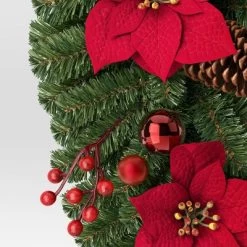 28″ Decorated Pine And Poinsettia Flowers Hanging Christmas Artificial Swag – Wondershop™
