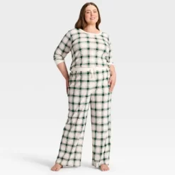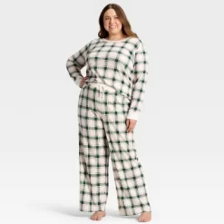 Women’s Plaid Microfleece Holiday Matching Family Pajama Pants – Wondershop™ Cream
