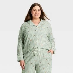 Women’s Plaid Ribbed Long Sleeve Holiday Matching Family Pajama Shirt – Wondershop™ Cream