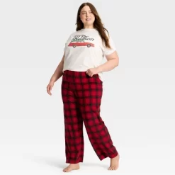 Women’s Plaid Microfleece Holiday Matching Family Pajama Pants – Wondershop™ Red/Black
