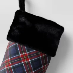 20″ Christmas Plaid Stocking With Cuff Dark Blue – Wondershop™