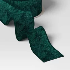 15′ Christmas Legacy Luxe Premium Ribbon Dark Green Velvet – Wondershop™