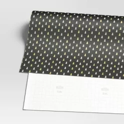 30” 25 Sq Ft Christmas Roll Wrap Gold/Silver Trees On Black – Wondershop™