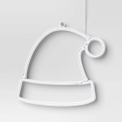 LED Battery Operated Christmas Neon Santa Hat Hangable Sign Red/White – Wondershop™